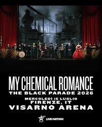Uno show potente e carico di emozioni, che celebra uno degli album più iconici della musica alternativa. Tra atmosfere teatrali, energia travolgente e brani entrati nella leggenda come Welcome to the Black Parade e Famous Last Words, il pubblico vivrà un’esperienza intensa e coinvolgente dall’inizio alla fine.